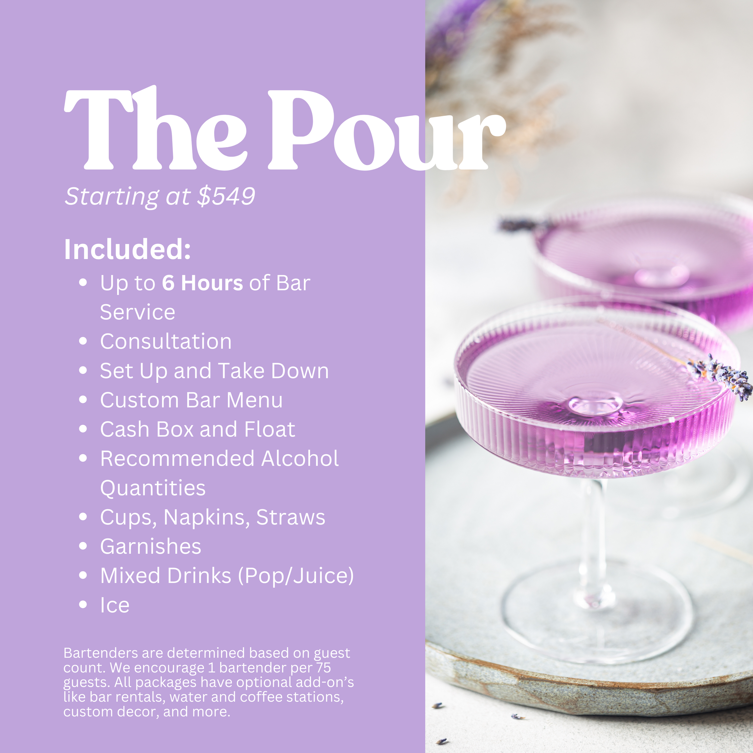 With a passion for mixology and a commitment to excellence, we craft memorable experiences, one drink at a time. Let us take care of your beverage needs, so you can focus on enjoying your special occasion to the fullest!